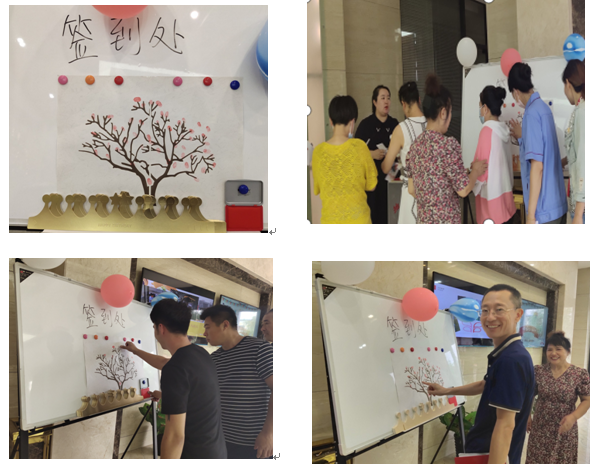準備就緒后,壽星們陸續進場簽到并領取抽獎券,大家紛紛在背景墻前拍照合影。由壽星們齊按的手印做成了鴻盛樹,每位員工是樹葉,公司是大樹,共同組成了鴻盛大家庭。